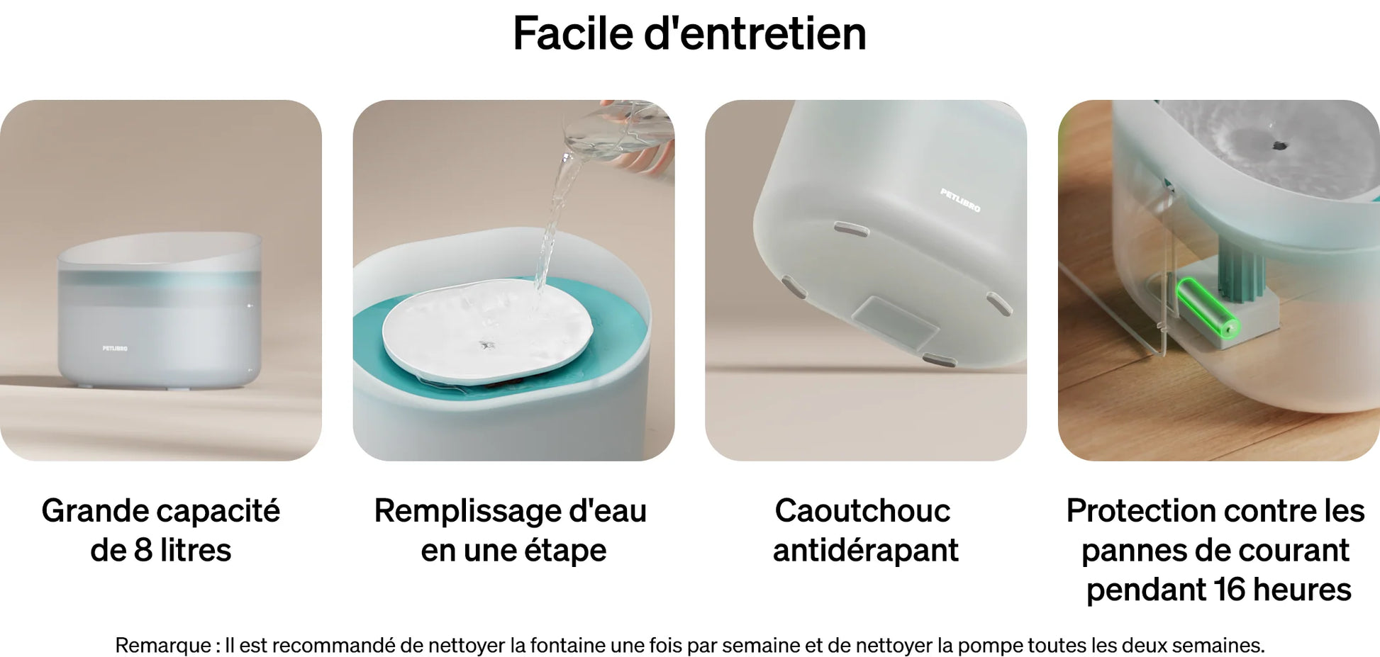 Son système de filtration avancé libère des minéraux essentiels qui favorisent une meilleure digestion, renforcent les défenses naturelles, soutiennent la santé rénale de votre félin., la vitalité et aide à prévenir les problèmes urinaires ou rénaux. Chaque gorgée devient une source de santé et de bien-être.