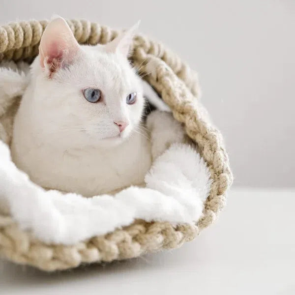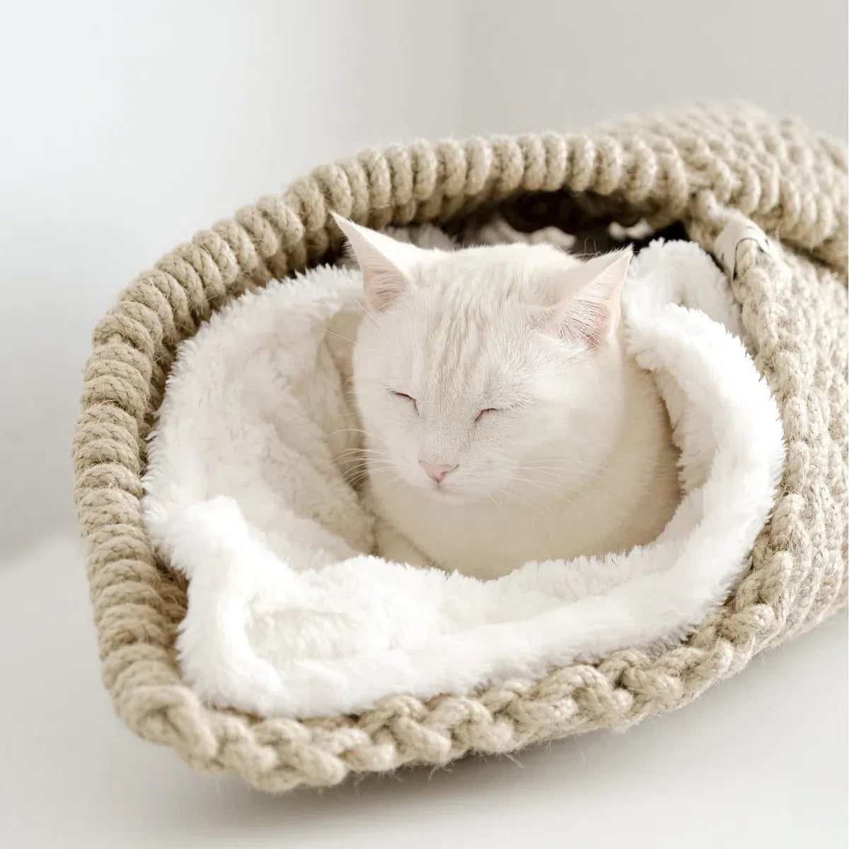 Offrez à votre chat un espace accueillant et apaisant grâce à ce nid en laine tricotée, conçu pour répondre à ses besoins naturels de confort et de sécurité. Fabriqué avec des matériaux de qualité, il est doublé d’un tissu doux qui garantit des siestes confortables tout en s’intégrant harmonieusement à votre intérieur.